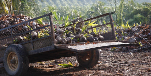 After the daily harvest is done, farm workers remove any coconuts of poor quality, then the journey of the organic coconut begins! The coconuts are transported to a certified organic facility for further processing into organic coconut milk.